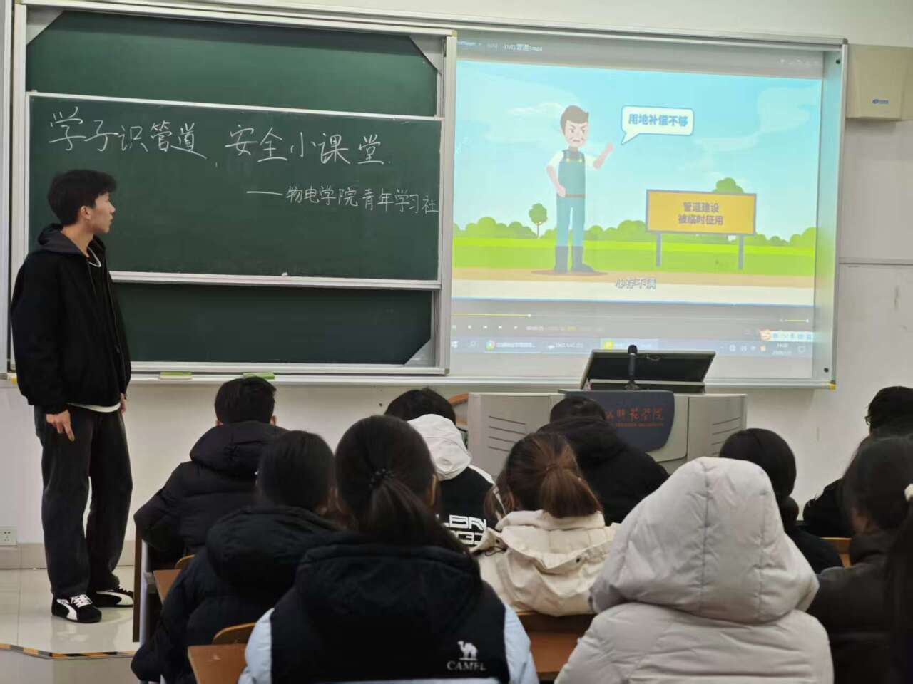 在盐城师范学院公共教学楼,宣讲团开展以“学子识管道·安全记心间”为主题的管道安全标识认知主题活动。活动聚焦学生管道安全标识认知薄弱的问题,落实“少年儿童关爱保护计划”安全守护要求,帮助大家掌握管道安全知识与避险技能,筑牢公共安全防护意识。