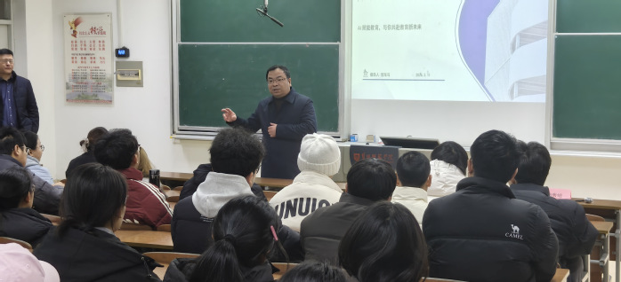 宣讲环节,吴海卫结合自身求学与创业经历,详细介绍了公司AI赋能教育的核心业务、企业文化及发展规划。该公司以AI技术为核心驱动力,聚焦学科辅导与个性化教育领域,依托大数据分析与智能算法,为学员定制专属学习方案,同步推出智能伴学、在线答疑等特色服务,为高校学子搭建了优质的就业成长平台。同时,吴海卫寄语学弟学妹,要扎实夯实专业基础,科学做好职业规划,在实践中锤炼本领、实现价值。