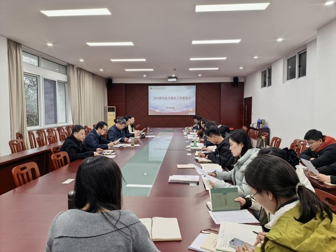 3月18日,为早谋划、早部署、早行动,打好2026届毕业生就业攻坚战,商学院在逸夫楼三楼大会议室召开2026届毕业生就业工作推进会。学院全体领导班子成员、各系主任、党支部书记、全体辅导员等参会。会议由党委副书记秦圣阳主持。