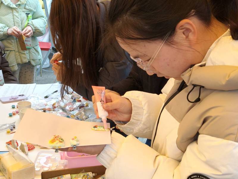 用奶油胶与卡通配件DIY发夹,在创意手作中感知自我、点亮心情。每一件作品都承载着独特的审美与心情。在涂抹、粘贴的慢节奏创作中,同学们暂时放下学业压力,在专注创作中感知自我、悦纳自我,一件件精致的发夹成为了“治愈心情的小勋章”。