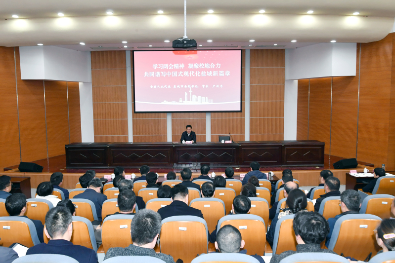 3月19日下午,盐城市委副书记、市长严汉平在我校新长校区图书馆学术报告厅宣讲全国两会精神并讲授思政课,与广大师生交流心得体会,希望大家准确理解把握习近平总书记重要讲话精神和全国两会精神,立足“十五五”发展新征程,进一步深入推进校地融合发展,共同谱写中国式现代化盐城新篇章。盐城市副市长李兰翔,盐城市政府办公室主任、市政府研究室主任王胜,盐城市政府办公室副主任施赟之,盐城市教育局局长郑荣文出席会议。报告由学校党委书记张玉勤主持。