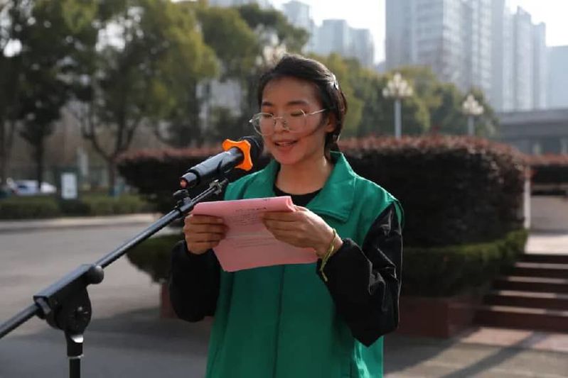 活动伊始,盐城师范学院大学生志愿者付笑笑介绍了出席嘉宾。她特别提到,去年的这个时候,盐城市第一中学的师生们曾奔赴新四军纪念馆,参加“植树节碳汇行”活动,在那里栽种五谷树、擦拭英雄浮雕,将红色教育与绿色使命紧紧相连。时隔一年,大家再次携手,带着这份“红色+绿色”的初心回到一中校园,这不仅是植树活动的延续,更是生态文明教育的深化,是从“课程育人”向“实践育人”的生动跨越。