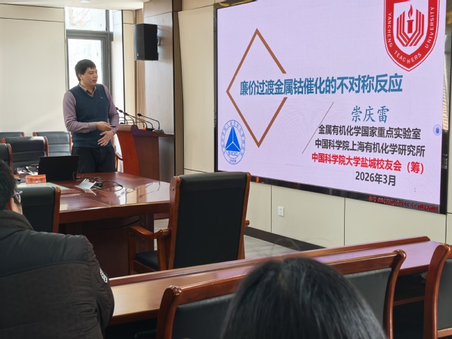 3月25日下午,中国科学院上海有机所专家崇庆雷应邀来校作题为《廉价过渡金属钴催化的不对称反应》的学术报告,化学与环境工程学院教师、研究生、部分本科生参会。
