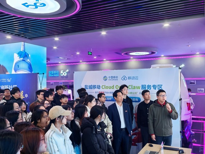 在中国移动盐城分公司5G+智慧展厅,潘承军经理系统阐释了5G技术在新基建中的核心地位,并全景展示了低空经济、物联网、智慧城市等多元化应用场景。师生走进低空飞行服务中心,政务巡检、智慧农业等无人机实时调度案例让同学们直观感受到“数字经济”正深刻重塑社会生产、生活方式。在中国移动云龙虾专属服务区,师生们现场观摩AI技术演示,并佩戴VR交互设备,沉浸式体验虚实融合的元宇宙场景。