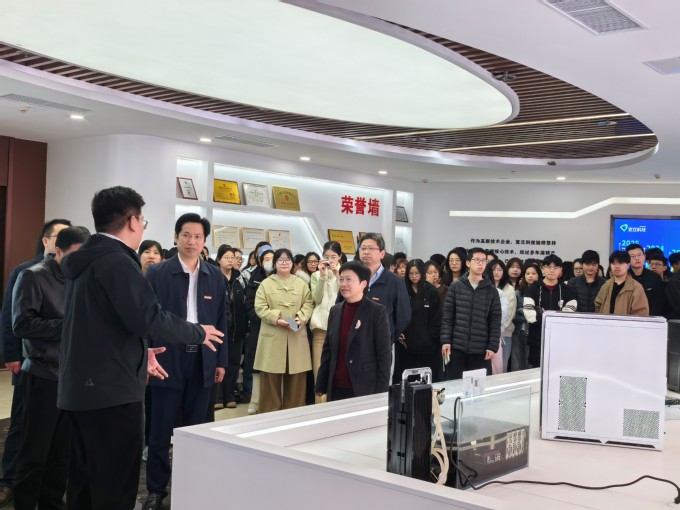 在上海宽泛(盐城)科技有限公司数字化展厅,业务经理戴国华围绕“边缘计算与人工智能硬件”主题,系统讲解了高性能计算、边缘计算设备及AI服务器在数字经济中的基础支撑作用,并结合工业质检、智慧城市等典型场景,生动展示人工智能技术落地的实际成效。同学们有序参观了企业智能设备运行实况,从抽象概念到具象认知,“云计算”“边缘智能”等术语在一台台服务器和算法演示中变得触手可及。不少同学驻足拍摄,就硬件部署、算力调度等问题与企业工程师深入交流。