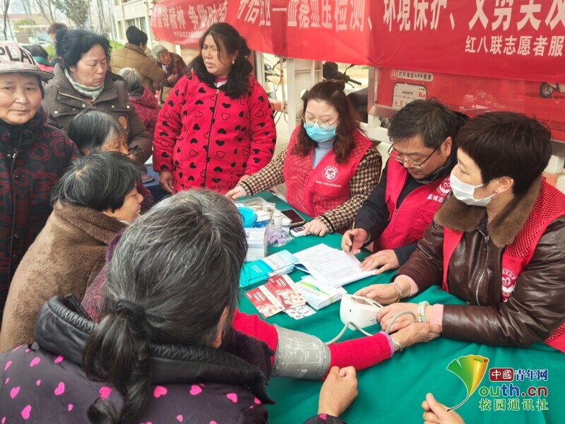 图为世华公益工作人员为社区居民提供免费健康监测服务。娄佳怡 供图