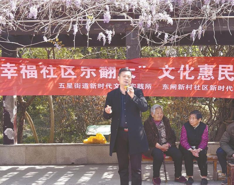 武山在为社区居民演唱淮剧