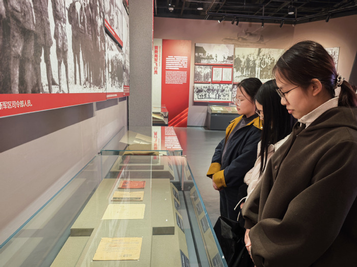 2025级入团积极分子代表李函表示:“每一件文物、每一幅照片都承载着信仰的力量与革命的记忆。作为新时代青年学子,我们当铭记历史、传承铁军精神,将红色力量转化为勤学笃行的实际行动,锤炼专业本领,践行初心使命,以青春之姿勇担时代使命。”