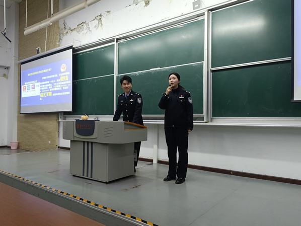 3月31日晚,美术与设计学院在公共教学楼C201教室举办春学期反诈宣讲主题活动。活动邀请经开区新城派出所民警朱津苇、汪琦担任主讲,学院专职辅导员及240余名学生参加本次活动。