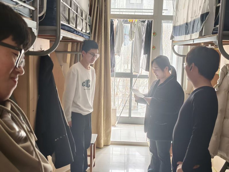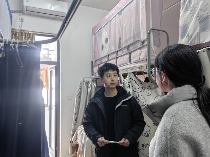 在排查安全隐患之余,老师们还与走访宿舍同学深入交流,详细了解同学们的日常作息、宿舍卫生及寝室相处氛围。通过面对面的交流,师生共同关注是否存在熬夜打游戏、室内吸烟等不良生活习惯,以及室友间是否相互包容、和谐共处。针对走访中发现的具体问题,老师们耐心提出改进建议,学生干部则从朋辈角度分享自律经验,引导同学们摒弃陋习、珍惜集体生活环境,共同营造安全有序、健康文明、温馨和谐的宿舍家园。