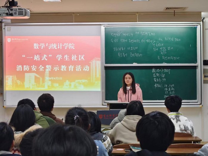 为进一步强化学生安全防范意识,夯实一站式学生社区安全根基,4月1日,数学与统计学院依托晚自习时间,在各教室集中开展消防安全警示教育宣讲活动,全体2025级学生参与。