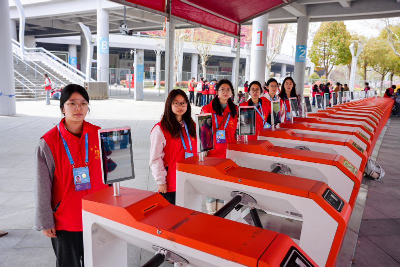 决赛当天,200名青年志愿者早早抵达赛场,迅速奔赴各自岗位。他们身着统一志愿服装,坚守在检票各环节和饮水保障点,用专业与汗水为赛事保驾护航,成为赛场外一道亮丽的青春风景线。为确保3万余名观众有序、快速入场,赛事设置了三道检票流程,志愿者分布其中,各司其职。在预检口,志愿者手持PDA设备配合人工初核,提前分流;在复检口,志愿者熟练操作终端,快速完成正式票务核验;在闸机入口,引导观众有序通过人脸识别与身份证比对,保障入场环节顺畅无阻。此外,志愿者还分布在内场通道各饮水点,维持秩序、引导人流,为观众提供饮用水。