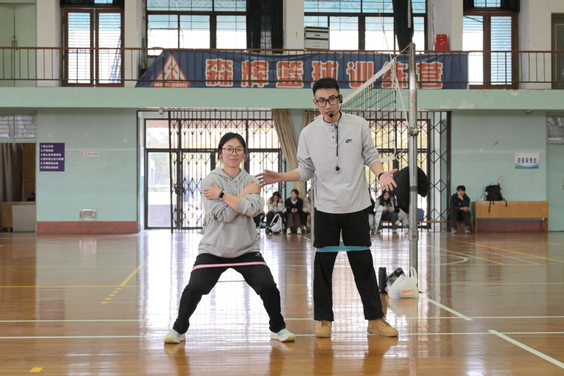 4月8日下午,体育与健康学院2026年第三期校外指导教师名师示范课在篮球馆顺利开展。本次示范课聚焦《体能:用弹力带发展下肢肌肉力量》(水平三・五年级),由盐城市教坛新秀、资深体育教师王聪主讲,学院体育教育专业师生全程参与学习观摩。