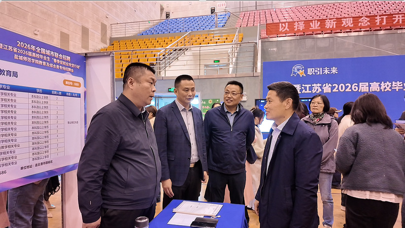 本次招聘会由省教育厅、省人社厅、省工商业联合会主办,省高校招生就业指导服务中心、省劳动就业管理中心、省职业介绍中心、盐城市人社局和我校共同承办。本次招聘会是学校扎实推进毕业生就业工作的重要举措,有效搭建了人才与岗位高效对接的桥梁。学校将继续扩容优质岗位资源、加密组织校园招聘活动、提升就业服务质效,全力推动我校2026届毕业生高质量充分就业。