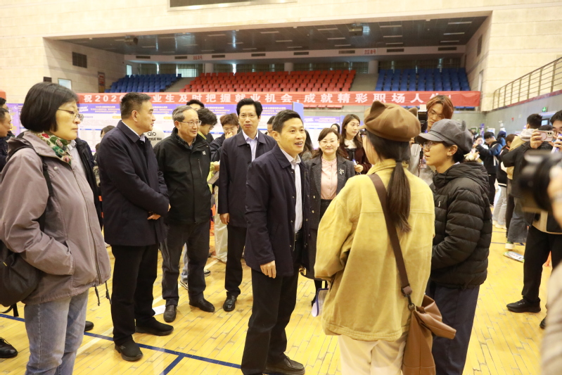 张宏如在招聘会现场与用人单位代表深入交流人才需求、校企合作等事宜,认真听取企业招聘需求、行业发展趋势及对学校人才培养的意见建议。同时,他还与现场求职毕业生亲切交流,详细询问毕业生求职意向、职业规划及求职过程中遇到的困难,鼓励同学们坚定就业信心、抢抓就业机遇。