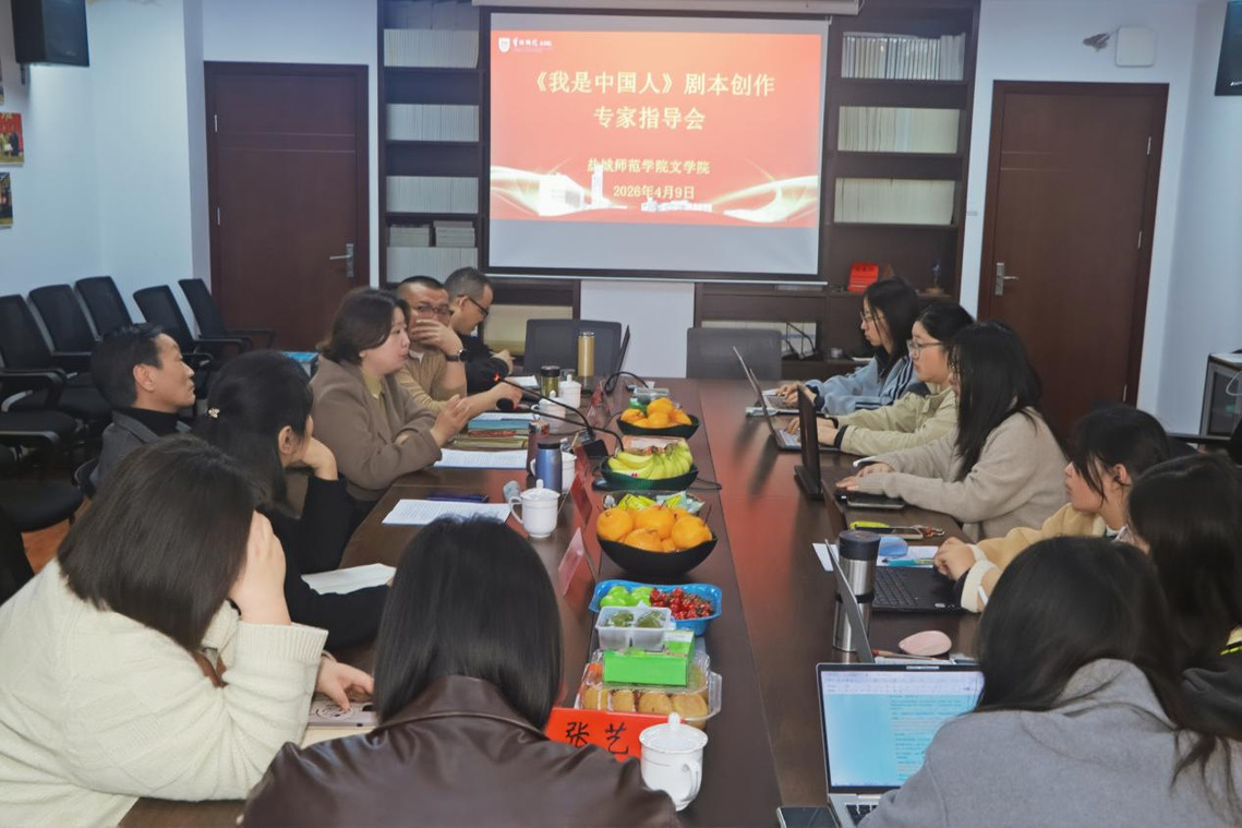 4月9日上午,文学院特邀著名剧作家陈明、盐城市文化馆馆长杨莺及曲艺编导季逢春开展《我是中国人》剧本创作指导,文学院院长李尧、副院长冯青青以及创意写作全体学员参加指导会。