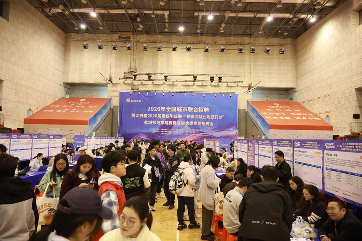 交汇点讯 4月8日下午,江苏省2026届高校毕业生春季促就业攻坚行动暨盐城师范学院专场招聘会举办,为高校毕业生与用人单位搭建起精准对接的“快车道”。