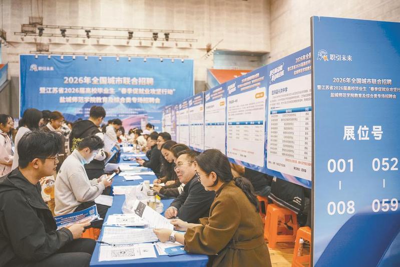 4月9日,盐城晚报以《专场招聘会助力毕业生“职”面未来》为题报道了江苏省2026届高校毕业生“春季促就业攻坚行动”暨盐城师范学院教育及综合类专场招聘会在新长校区举行。