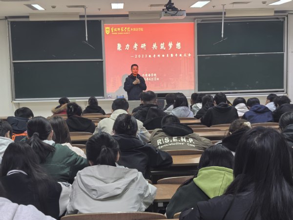 4月13日,外国语学院在主楼B303举办以“聚力考研,共筑梦想”为主题的考研动员大会。学院党委副书记宋传盛、全体辅导员及2023级学生共同参会。