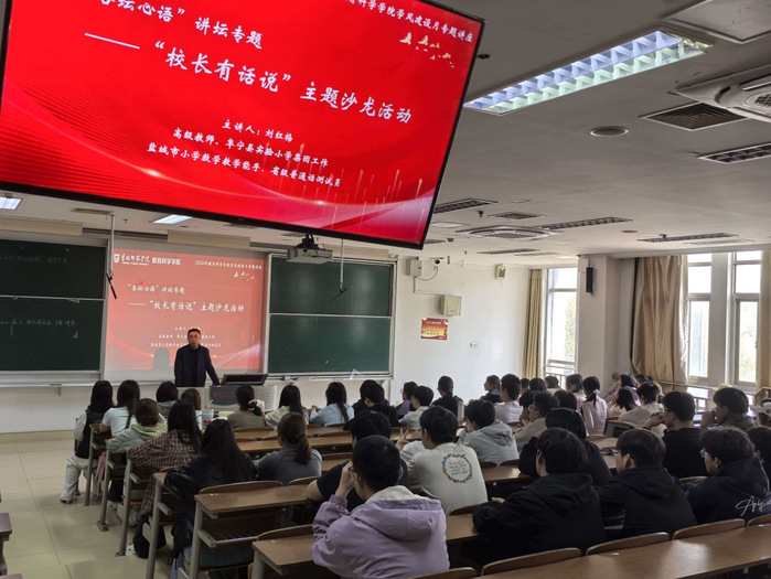 4月15日,教育科学学院举办“杏坛心语”之校长有话说专题讲座。活动特邀阜宁县实验小学高级教师刘红梅授课,2024级、2025级小学教育(数学)全体学生参与,沉浸式汲取一线教育智慧。