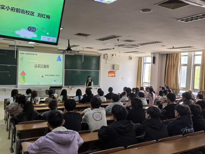 刘红梅以苏教版四年级下册《认识三角形》为课题,结合小学生认知特点,呈现了一堂高质量小学数学示范课。她遵循“从实例到抽象”的思路,从生活场景切入,引导学生通过观察、实操掌握三角形定义、各部分名称及底和高的含义,巧妙突破教学难点,让师范生直观感受一线课堂教学方法。