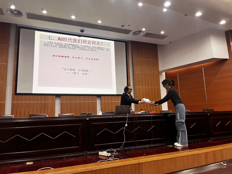 陈义海教授结合自身作为双语诗人的成长经历,从“骑牛读书时代的梦想、方格稿纸时代的爱恋、电子邮件时代的放飞、AI盛行时代的坚持”四个维度,分享了逆境中的读书心得与逐梦历程,并以跨文化视角拓宽学生国际视野。讲座深入探讨了人工智能时代如何坚守阅读初心、重塑阅读价值,现场反响热烈。
