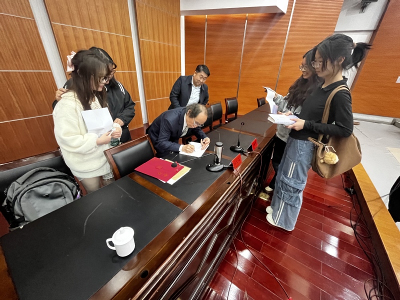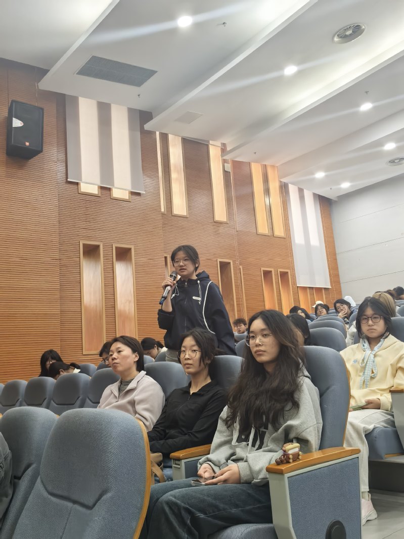 互动环节中,陈教授耐心解答师生提问并现场赠书。本场讲座由图书馆副馆长于胜博主持,海洋与地理科学学院、商学院等200余名学生及部分馆员参加。