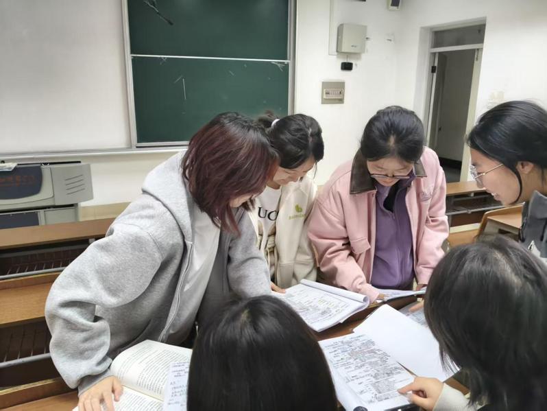 活动中,各班级结合实际情况,精准摸排同学们的学业痛点与难点,采取“一帮一”“多帮一”等灵活多样形式组建帮扶小组。学习优异、经验丰富的同学主动化身“朋辈导师”,利用课余时间、晚自习等时段,针对古代文学、现代汉语等专业基础课,开展笔记分享、错题讲解和备考经验交流。学业帮扶小组不仅实现了知识的有效传递,更在潜移默化中激发后进同学学习内驱力,实现了从“要我学”到“我要学”的转变。