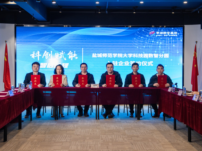 4月20日下午,我校大学生科技园数智分园揭牌暨OPC社区首批入驻企业签约仪式在睿思数字基地举行。该基地在盐城环保高新区的大力支持下,由我校与盐城亭湖睿思数字基地合作共建,旨在强化校地产学研深度融合,提升学校大学科技园服务能级,打造“双高协同”发展新载体。
