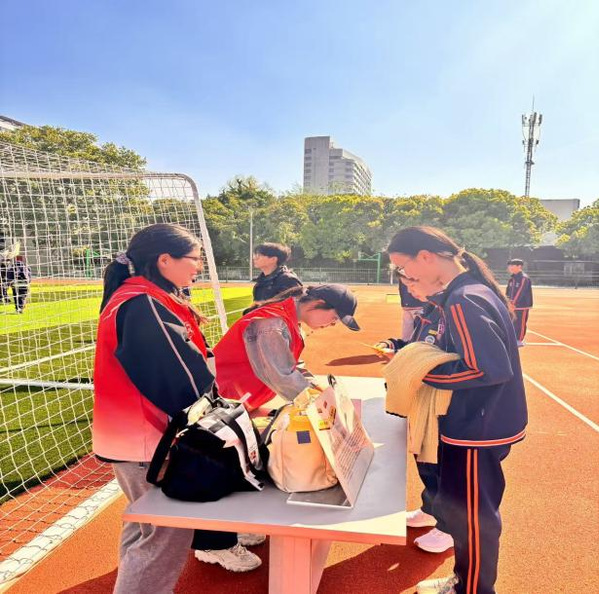活动现场,志愿者结合新四军革命文物展板,为参与运动会的师生逐一讲解了N4A臂章、一件旗袍以及宋公碑等珍贵文物背后的抗战故事,学生们驻足聆听,不时与志愿者交流互动。与此同时,志愿者还为完成文物学习的学生加盖纪念印章,用趣味打卡的方式让学生在沉浸式体验中加深对红色历史的理解。