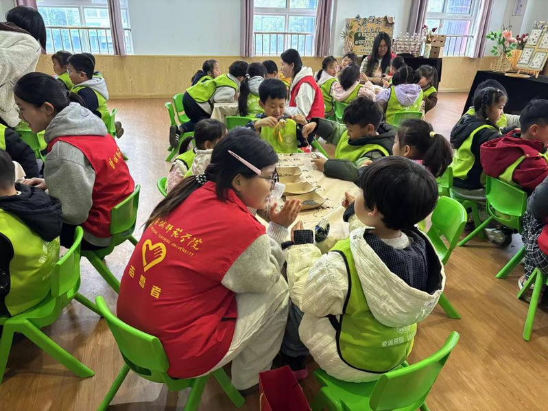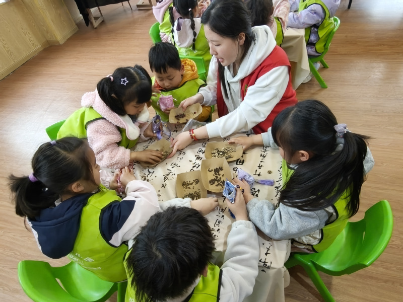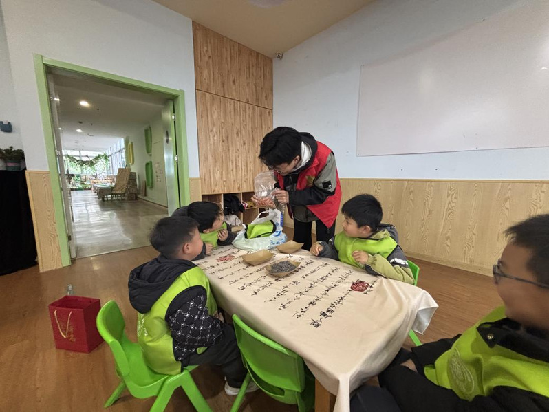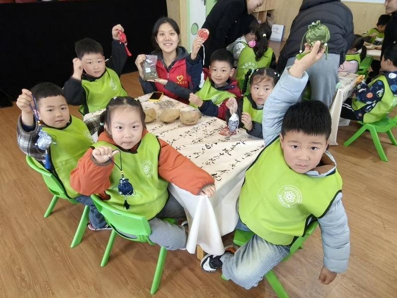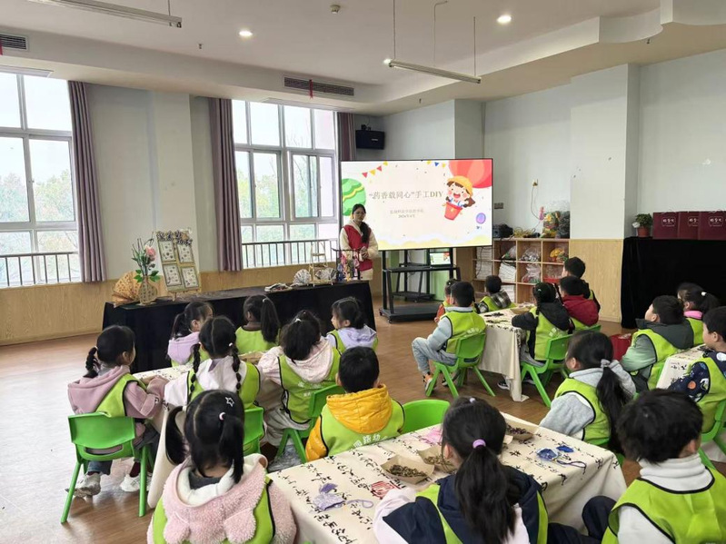 在盐城新园路幼儿园,志愿者提前准备了艾草、薄荷、陈皮等中草药原料及民族风香囊空袋。在志愿者陪伴下,孩子们通过触摸、闻香、辨认等方式认识中药材,亲手挑选香料、填充香囊。孩子们举着自己制作的香囊,笑容灿烂,现场气氛温馨热烈。